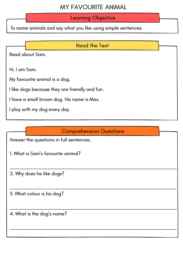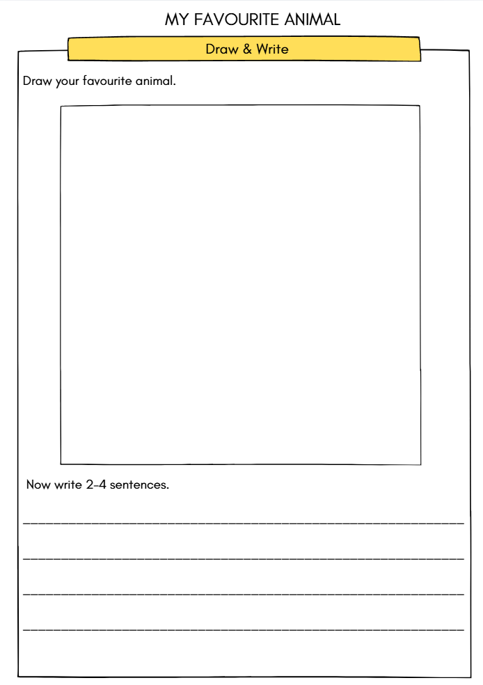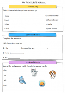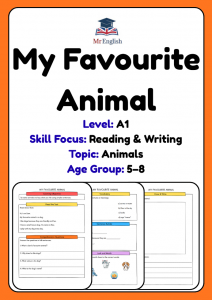 A1 English Worksheet – My Favourite Animal (Reading, Vocabulary & Draw and Write Activity for Kids Ages 5–8)