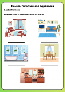 A1 Houses, Furniture & Appliances Worksheet is a fun and interactive way for kids ages 6–9 to engage with everyday concepts. Children love exploring their surroundings, and this worksheet invites them to use their imagination while learning. It encourages creativity as they think about different types of houses and furniture, making it an enjoyable and relatable experience. Additionally, by incorporating familiar themes, kids can easily connect with the activities, sparking their curiosity and enthusiasm for learning.