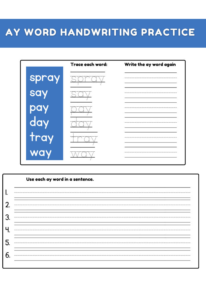 Help children aged 5–7 master AI and AY phonics with this fun handwriting booklet! Includes tracing, sentence writing, wordsearch puzzles, and colouring activities to boost reading, spelling, and writing confidence.