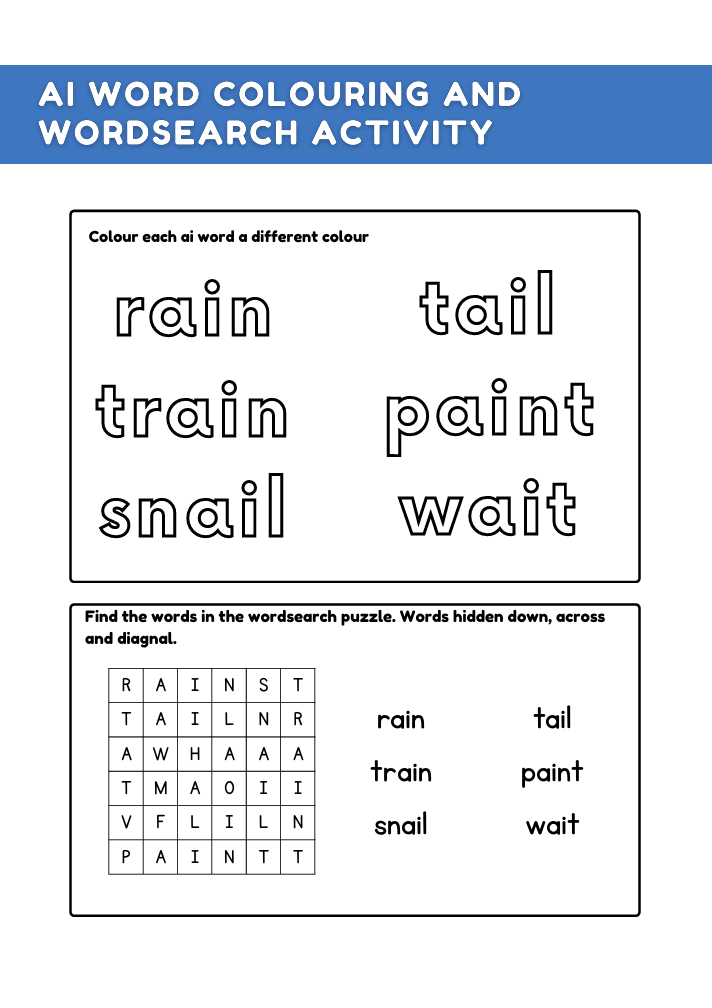 Help children aged 5–7 master AI and AY phonics with this fun handwriting booklet! Includes tracing, sentence writing, wordsearch puzzles, and colouring activities to boost reading, spelling, and writing confidence.