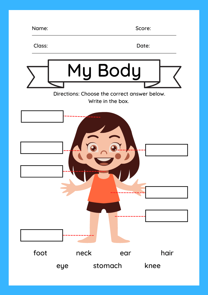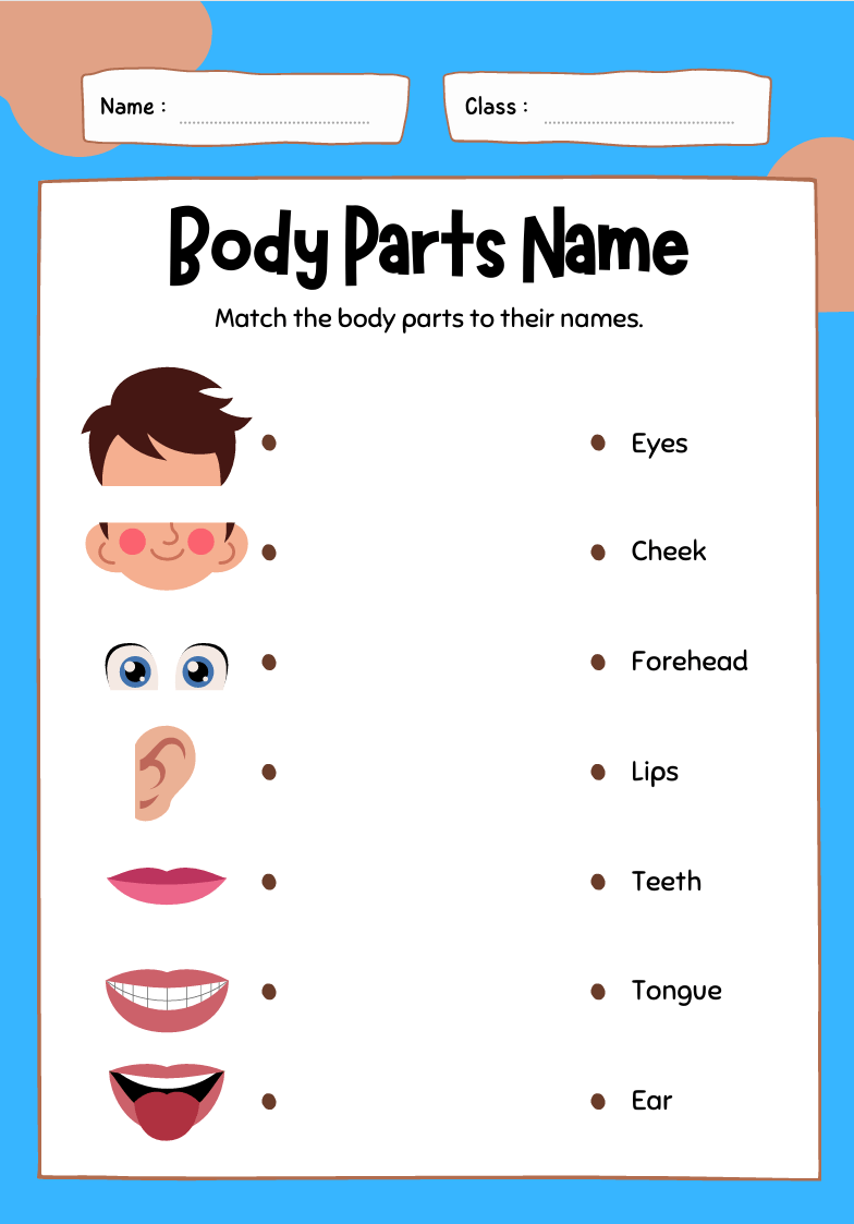 Download fun and educational body parts worksheets for kids aged 6–9. Perfect for ESL learners, these printables help children build vocabulary and confidence in English