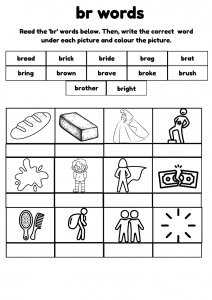 BR Word Worksheet for Kids Aged 5-8 – Fun Phonics Practice & Reading and Writing skills.