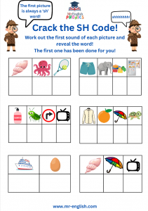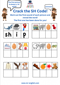 Crack the code and master the ‘sh’ sound with this fun phonics worksheet! Perfect for young learners, this activity helps children recognise, read, and spell ‘sh’ words like ship, shell, and shop while solving simple word puzzles. A great way to build early reading skills through play!