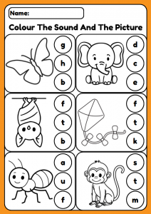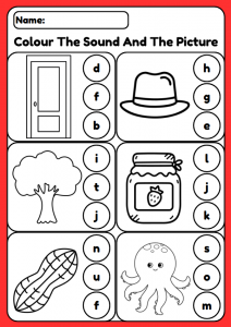 Fun “Colour the Sound” phonics worksheets for children aged 3–5. Help young learners recognise initial sounds, develop phonemic awareness, and build fine motor skills through colouring and picture-based activities. Ideal for preschool, nursery, ESL, and home learning.