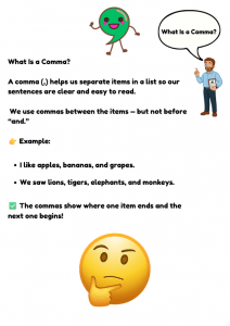 Kids in KS1 (ages 6–7) will have a blast with the "Commas in a List Worksheet"! This engaging resource makes learning about punctuation fun and interactive. With colorful designs and playful activities, students can enjoy practicing their skills in a way that feels like playtime. The combination of education and enjoyment keeps young learners motivated and excited about mastering commas!