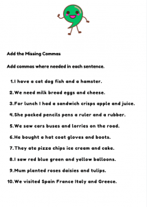 Commas in a List Worksheet for KS1 (Ages 6–7) | Fun English Punctuation Practice