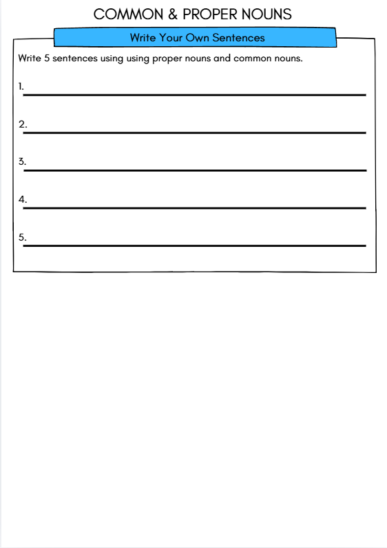 Kids in Year 2 will love the Common and Proper Nouns Worksheet as it offers a fun and engaging way to enhance their grammar skills. This interactive resource is designed specifically for Ages 6–7, making it age-appropriate and relatable. The colorful format and playful approach will capture their attention, turning grammar practice into an enjoyable activity. Students will feel accomplished as they learn to identify nouns, making it a rewarding experience!