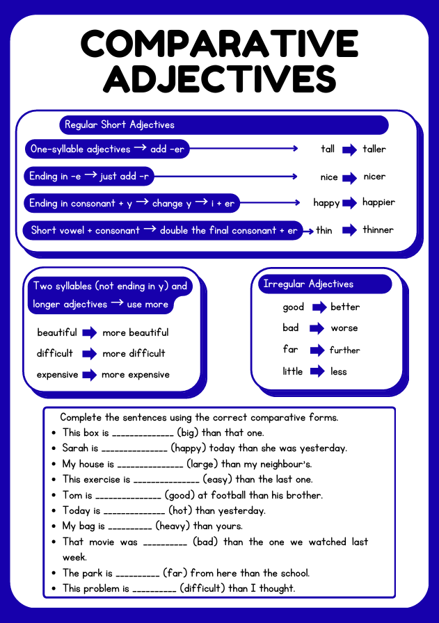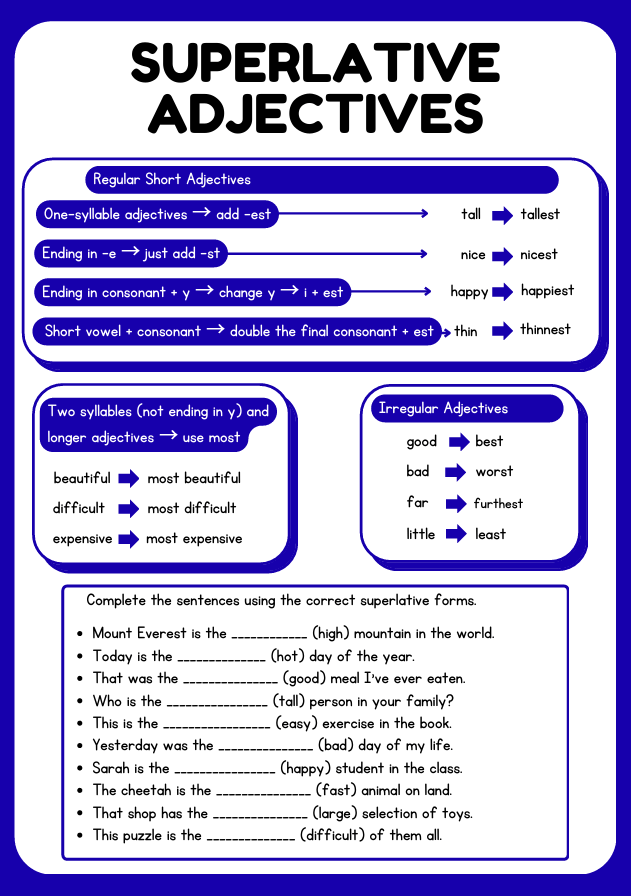 Comparative and Superlative Adjectives Worksheet PDF (Ages 8–12) | Grammar Practice
