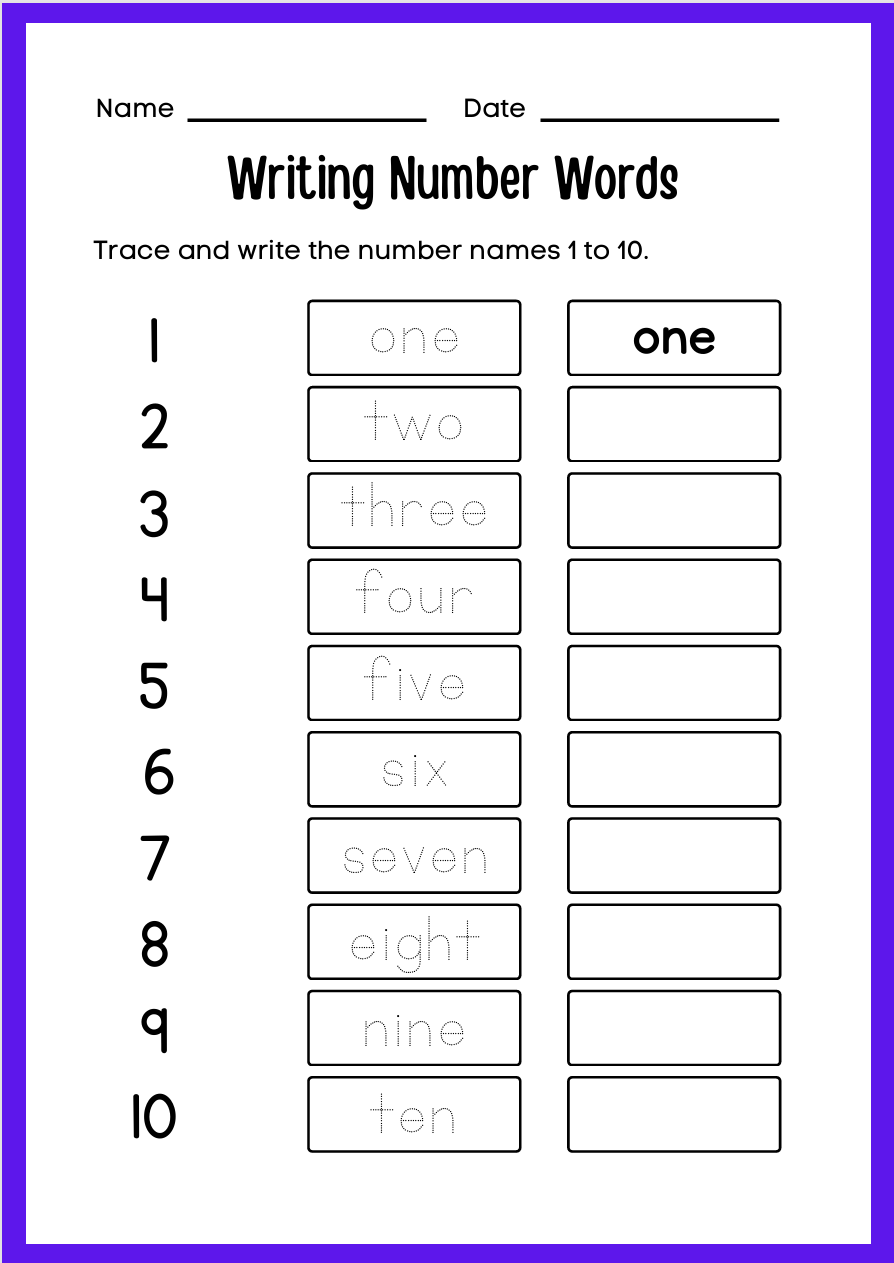 Help kids aged 4–6 learn to count with fun and interactive worksheets! These printables include number tracing, writing number words, and matching numerals with objects—perfect for preschool and kindergarten math practice at home or in the classroom.