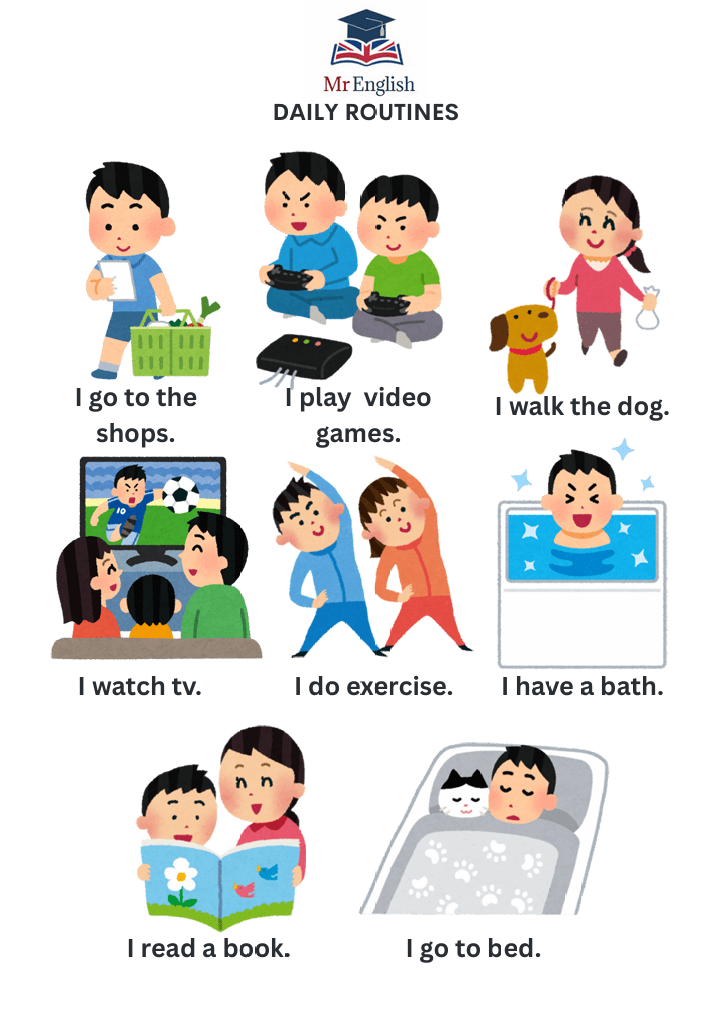 Learners will practise common actions like wake up, brush teeth, eat breakfast, and go to bed through vocabulary, matching, writing, and sequencing activities.