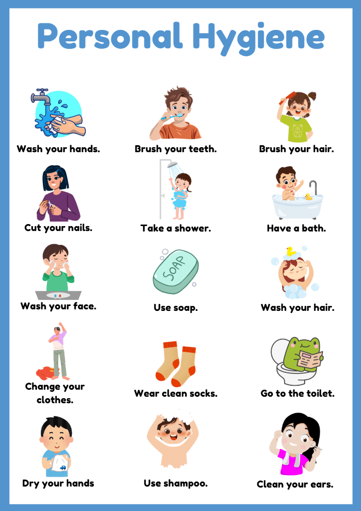 ESL Personal Hygiene Worksheet for Kids (Ages 5–10) | Printable Hygiene Poster