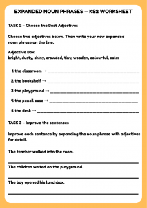 Expanded Noun Phrases Worksheet – KS2 Grammar (Ages 7–11)