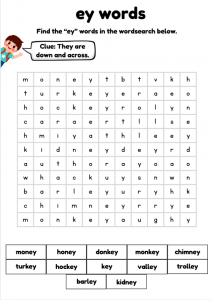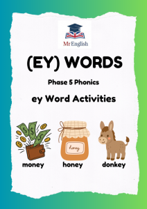 This EY Words Phonics Pack helps children practise reading, spelling, and writing Phase 5 EY sound words in a fun and engaging way. Activities include picture matching, sentence writing, clue sentences, and a word search to reinforce phonics learning.