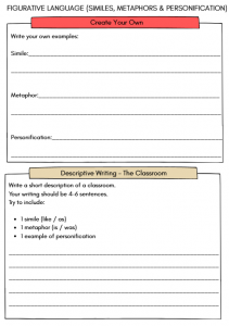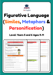 Develop descriptive writing skills with this engaging Year 5–6 figurative language worksheet. Includes similes, metaphors, personification, sentence upgrades, and a classroom writing task for ages 9–11.