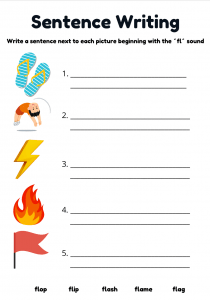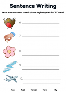 Fun and engaging FL words phonics worksheet for children aged 4–7. Includes handwriting, colouring, and sentence writing activities to practise Phase 4 phonics blends like flip, flap, flag, flash, and flower. Perfect for early readers and ESL learners.