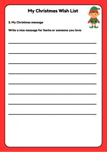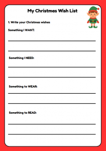 Download this free Christmas Wish List worksheet for children ages 4–10. Perfect for ESL classrooms and English learners, this festive activity helps kids practise writing, expressing ideas, and Christmas vocabulary. Includes sections for “Something I Want, Need, Wear, Read,” plus a drawing area and a Christmas message box. Ideal for teachers, parents, and holiday lessons!