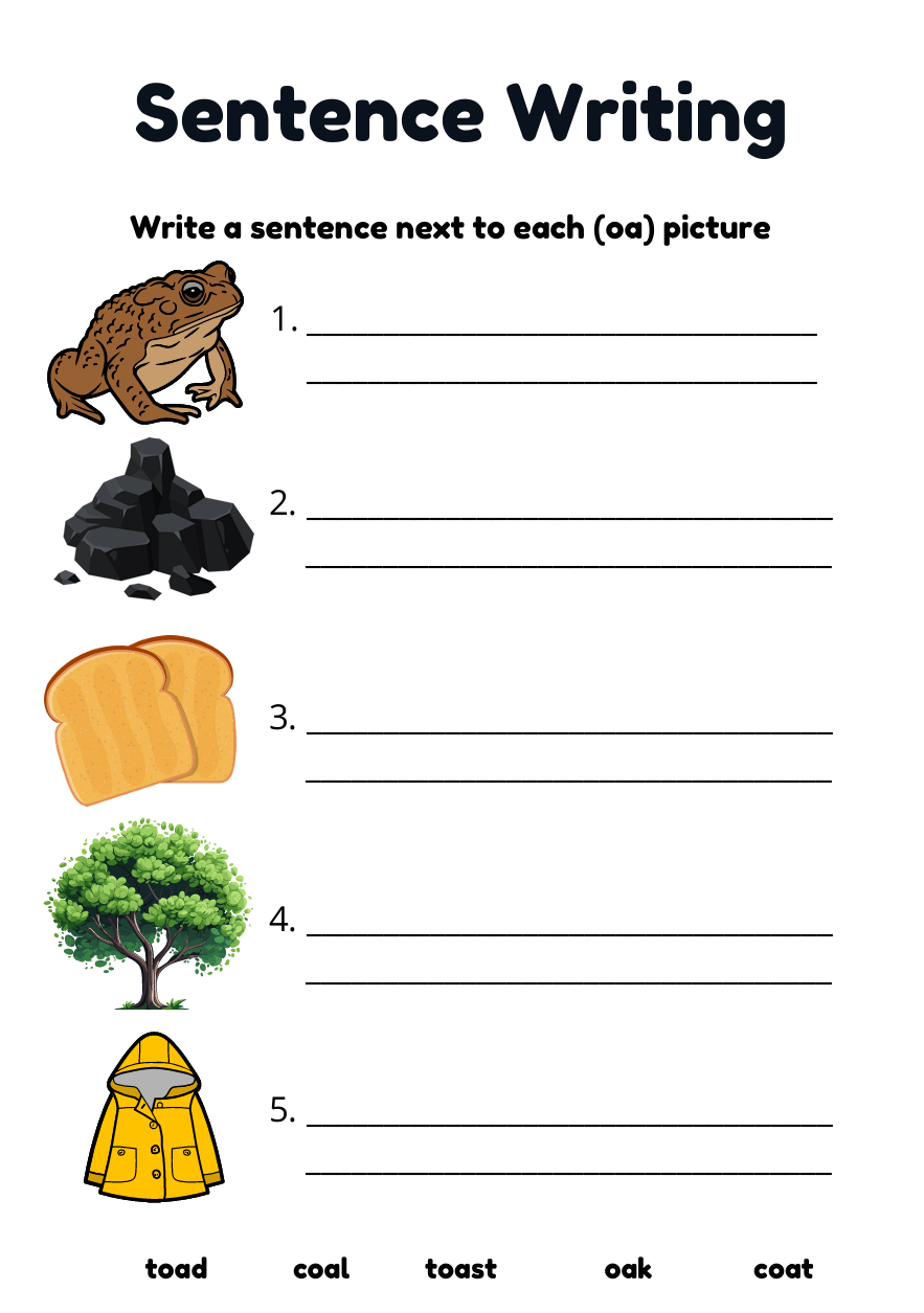 Fun ‘oa’ Phase 3 Phonics Worksheets for Kids Aged 5–7 | Handwriting, Colouring & Sentence Practice