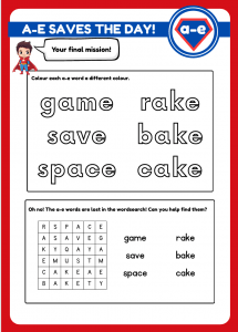 Discover these fun phonics worksheets for children aged 4–8. Download our “Super A-E” activities and help kids master the magic e and split digraphs with superhero-themed learning!