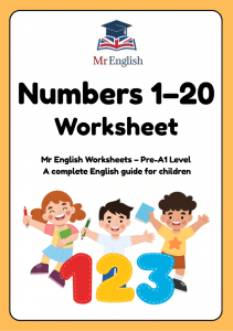 Help children aged 4–7 learn and practise numbers 1–20 with this colourful Mr English Pre-A1 worksheet.