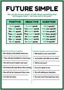 Download fun and easy Future Simple Tense worksheets for children aged 8–11. Practice using “will” and “won’t” in positive, negative, and question forms with engaging grammar exercises from Mr English.