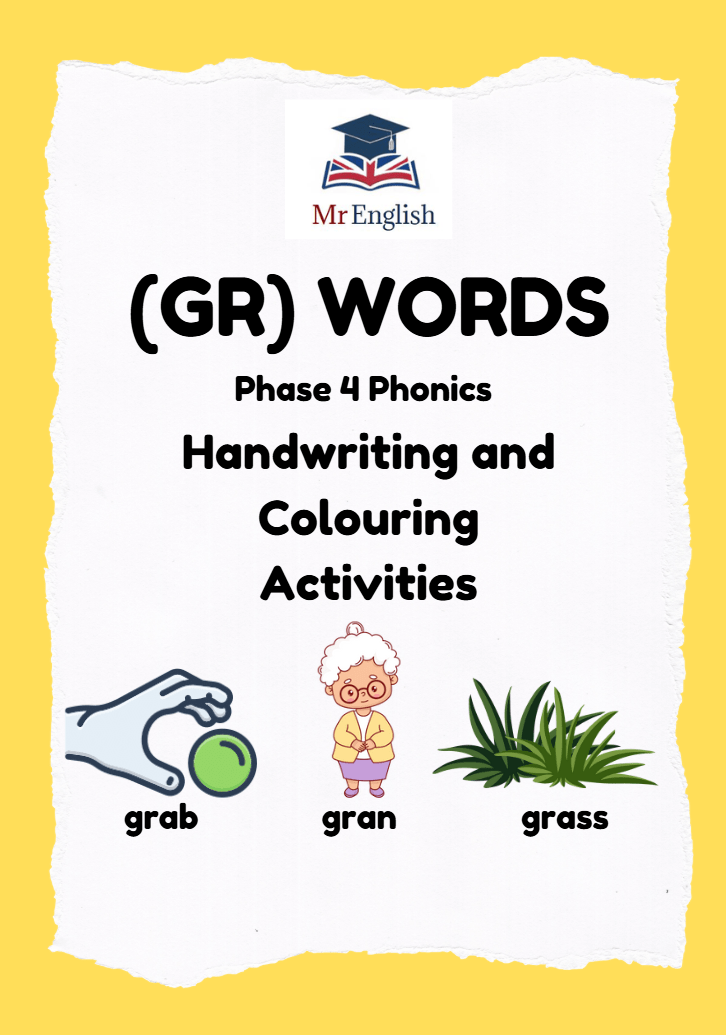 GR Words Worksheet for Kids (Ages 5–7) | Phase 4 Phonics | Handwriting, Colouring & Sentence Writing