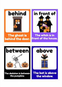 Halloween Preposition Flashcards for Kids Ages 4-8 | ESL Vocabulary | Printable PDF