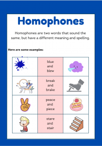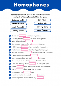 Homophones Worksheet – Same Sound, Different Meaning Ages 7-11