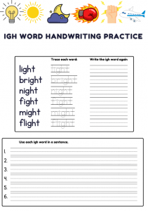 Help children aged 5–7 master igh and ie phonics with this fun handwriting booklet! Includes word tracing, sentence writing, colouring, and wordsearch activities—perfect for early literacy and spelling skills.