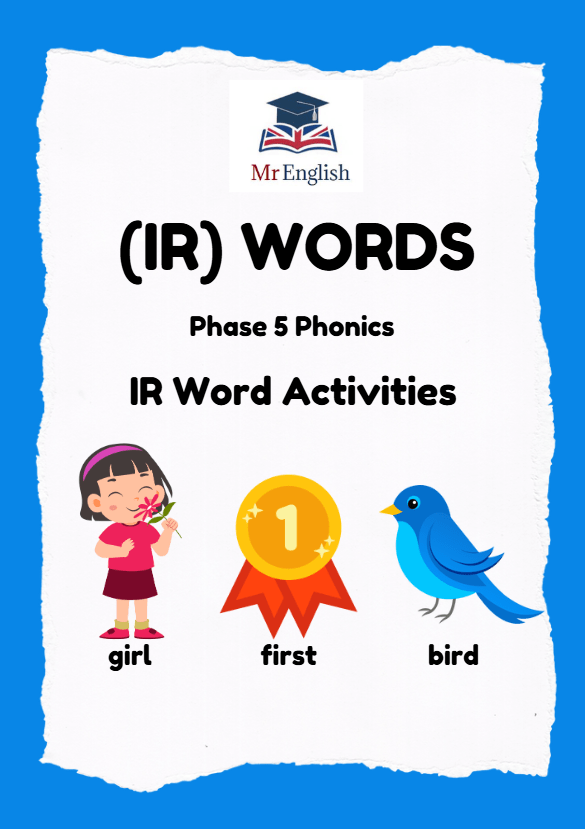 Help your child master IR words with this fun phonics worksheet! Includes engaging activities, word clues, and a wordsearch to practise ‘ir’ words like girl, bird, shirt, and first. Ideal for ages 6–8, Phase 5 phonics learners, ESL students, and early readers.