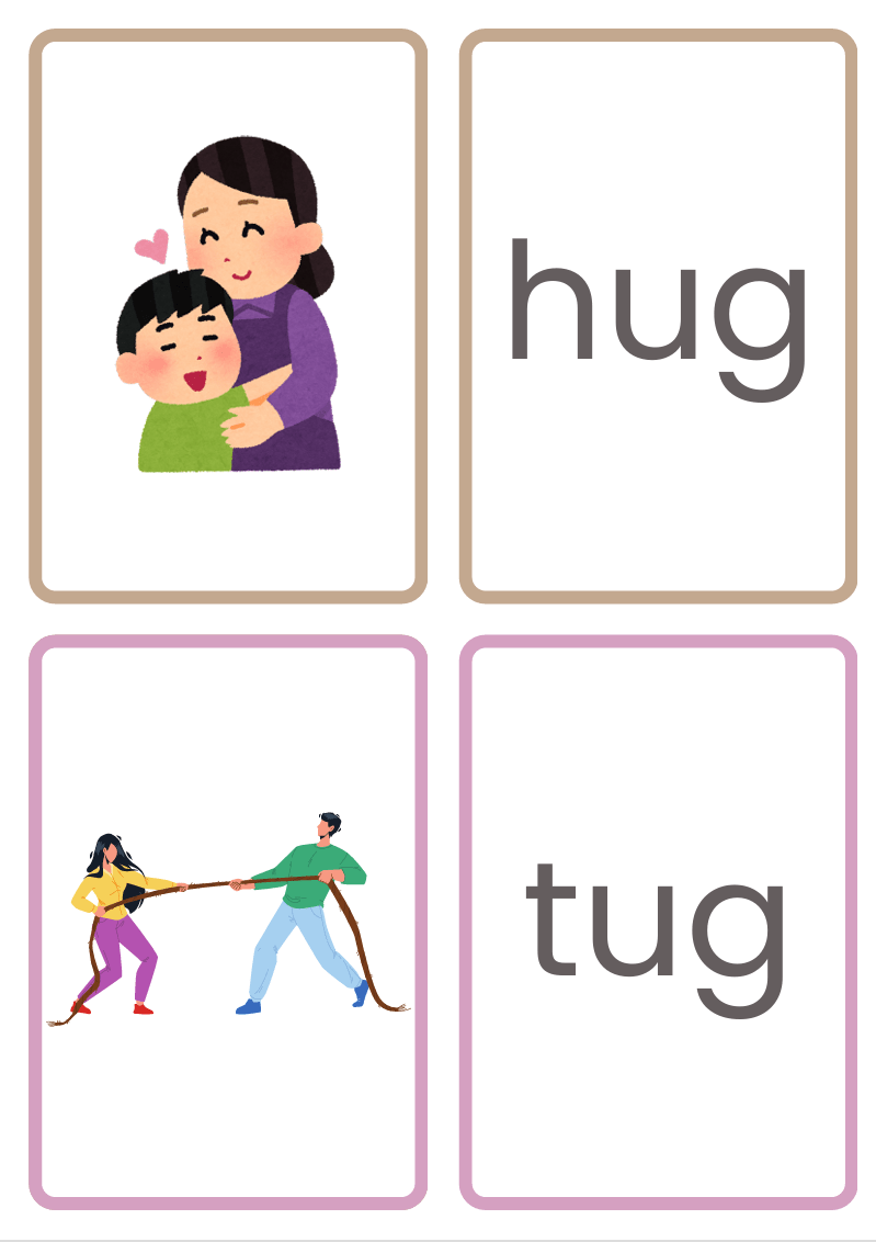 1. Matching Game – Match the –ug word card to its picture (e.g., bug with a bug image).