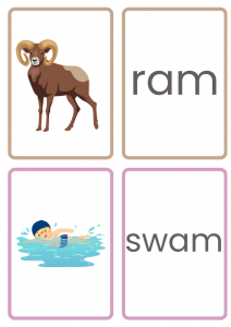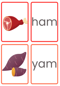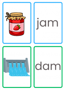 1. Matching Game – Match the -am word card to its picture (e.g., jam with a jar of jam).