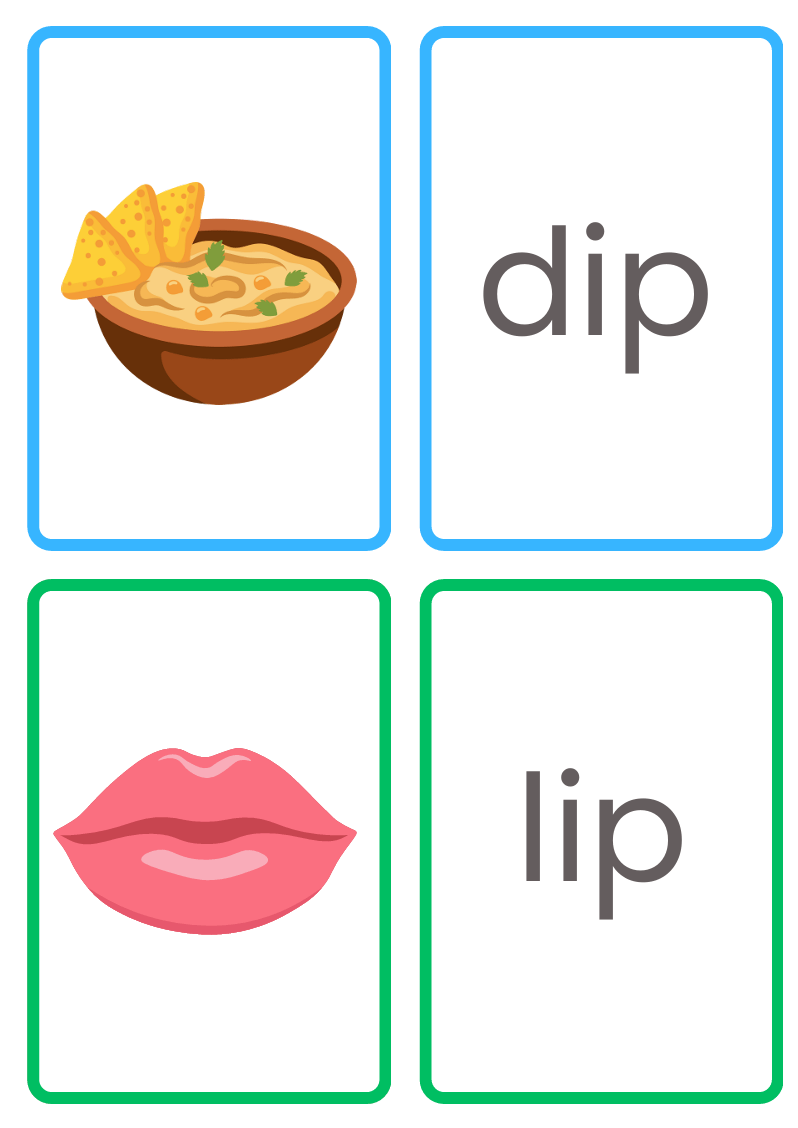 1. Matching Game – Match the -ip word card to its picture (e.g., lip with a picture of lips).