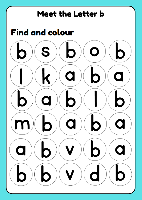 A fun and engaging Letter B formation worksheet for Early Years Reception (ages 4–5). Supports phonics and early writing through tracing, writing, finding, and colouring activities.