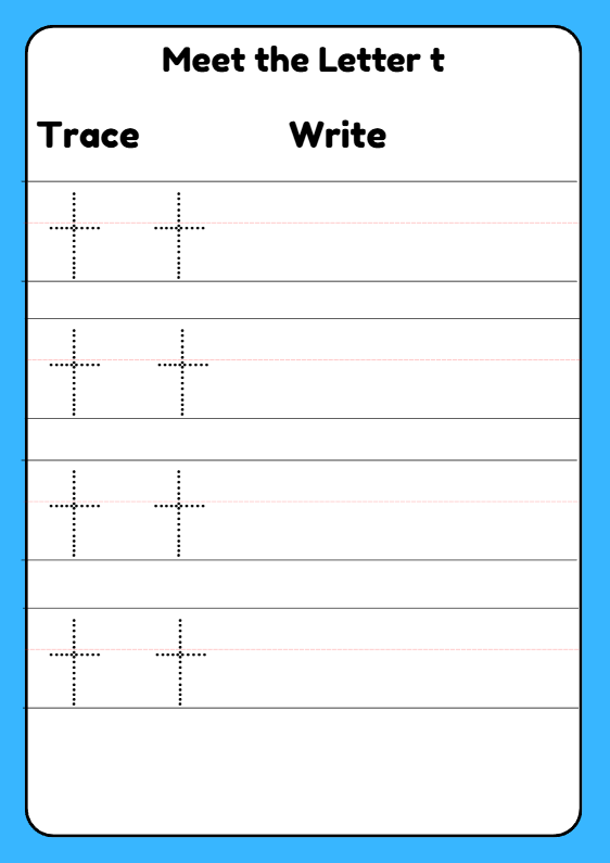 Kids love engaging in activities that allow them to express their creativity and develop new skills. The Letter Formation Worksheet focused on the letter T offers a fun way for young learners, ages 4-5, to practice phonics and early writing. Interactive worksheets keep children motivated and excited to learn as they enjoy the satisfaction of forming letters correctly. This playful approach not only enhances their writing skills but also boosts their confidence, making learning a joyful experience.