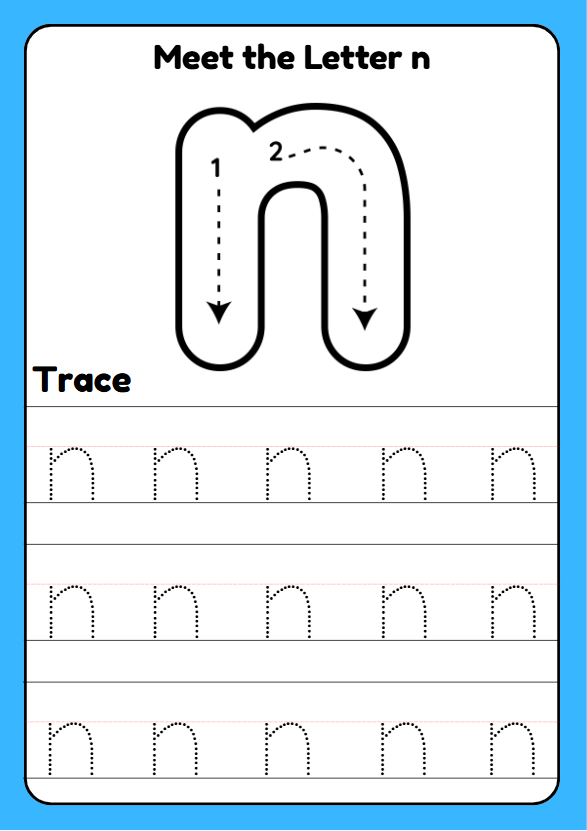 Letter formation worksheets, like the one focusing on lowercase 'n', offer a playful and engaging way for young children in Early Years Phonics to explore writing. These worksheets provide an opportunity for kids, ages 4–5, to express their creativity while developing fine motor skills. The tactile experience of tracing letters makes learning fun, allowing children to feel proud of their progress. Additionally, the structured approach helps to build their confidence as they master the basics of handwriting.
