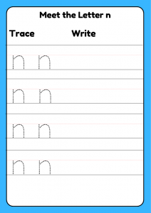 Letter formation worksheets, like the one focusing on lowercase 'n', offer a playful and engaging way for young children in Early Years Phonics to explore writing. These worksheets provide an opportunity for kids, ages 4–5, to express their creativity while developing fine motor skills. The tactile experience of tracing letters makes learning fun, allowing children to feel proud of their progress. Additionally, the structured approach helps to build their confidence as they master the basics of handwriting.