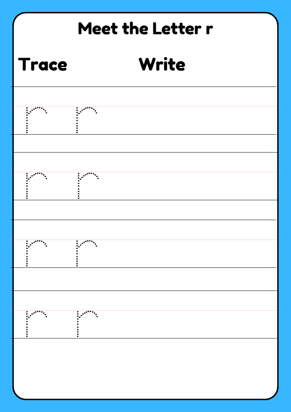 Fun and engaging Letter R formation worksheet for Reception children (ages 4–5). Includes tracing, colouring, letter recognition and phonics activities to support early writing skills.