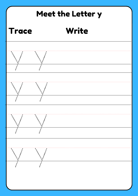 The Letter Y Formation Worksheet is an engaging phonics activity designed for reception-aged children (ages 4–5). Kids love interactive and hands-on learning experiences, and this worksheet offers just that! With colorful designs and fun activities, children can enjoy practicing their handwriting skills while mastering the formation of the letter Y. This playful approach to learning makes phonics feel like an exciting adventure, encouraging creativity and enhancing their writing confidence!