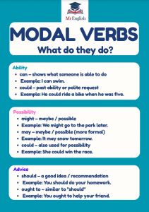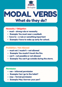 Make modal verbs easy to understand with this bright and child-friendly grammar poster! Designed for ages 9–12 and ideal for ESL learners, it clearly explains common modal verbs like can, should, must, might, and may using simple meanings and examples. Perfect for classroom walls or online lessons, this poster supports confident speaking and writing through visual learning.