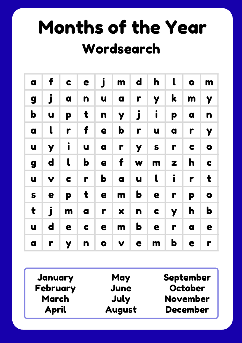 Make learning the months of the year fun for children ages 5–9! This printable activity pack includes handwriting practice, cut-and-stick ordering, and a word search. Ideal for ESL learners, preschool, kindergarten, and primary classrooms.