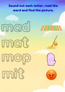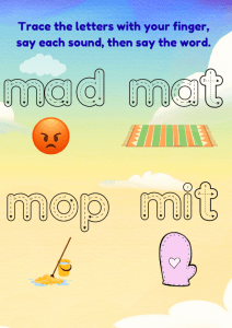 Give your child a strong start in reading with Book 2 of the My First Phonics series! Designed for ages 3–6, this interactive flipbook teaches the MDGOCK letters and simple CVC words through tracing, sounding out, and picture matching. Perfect for preschool, kindergarten, homeschool, and young ESL learners.
