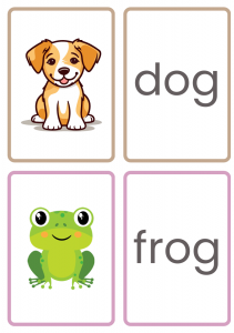Read and Find β Say a -og word like frog aloud, and have the child find the matching flashcard.