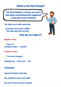 Download this fun and engaging Past Simple worksheet for ESL learners! Practice regular and irregular verbs, negative sentences, and past tense questions with easy examples and exercises—perfect for kids and beginner students.