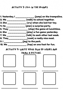 Learning about past tense verbs with -ed can be a fun adventure for kids! They get to explore how actions change when we talk about things that already happened. This not only enhances their language skills but also sparks creativity as they can share stories about their own experiences. Kids love engaging activities, and using -ed verbs opens up opportunities for imaginative storytelling, making the learning process enjoyable and memorable!