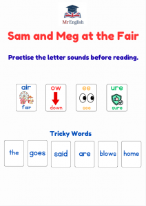 This fully decodable story focuses on Phase 3 sounds including air, ow, and ure, alongside common tricky words. Short sentences, repetition, and clear illustrations support independent reading and phonics development.