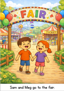 Sam and Meg at the Fair is Book 15 in a Phase 3 phonics series, created to help young children practise early reading skills with confidence.