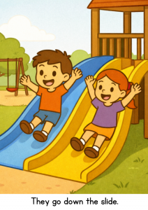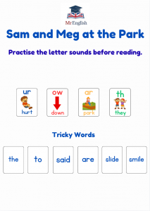 Sam and Meg at the Park is a Phase 3 phonics decodable reader designed to help young children practise early reading skills with confidence.