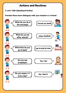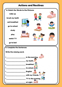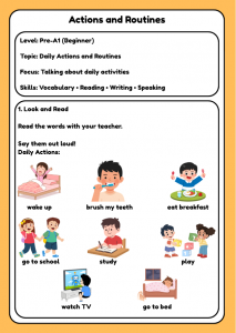 Pre-A1 Actions and Routines Worksheet for Kids (Ages 4–7)