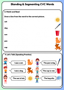 Kids aged 4 to 7 love exploring the world of sounds and letters, and a Pre-A1 Blending & Segmenting CVC Words Worksheet is a fun way to engage them! This interactive activity allows young learners to play with language, making learning feel like a game. The vibrant visuals and simple tasks help capture their attention, fostering a love for reading and writing. Through blending and segmenting, children can enjoy the satisfaction of discovering how words are formed, all while building their confidence and skills in a playful environment.