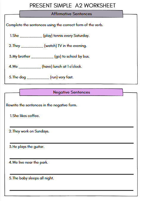 Kids aged 8–12 will enjoy the Present Simple A2 worksheet because it makes learning grammar fun and interactive. With engaging activities focused on affirmative, negative forms, and questions, students can boost their confidence while practicing essential language skills. The structured approach keeps them motivated and allows for enjoyable learning experiences, ensuring that they grasp the basics of English grammar with ease!